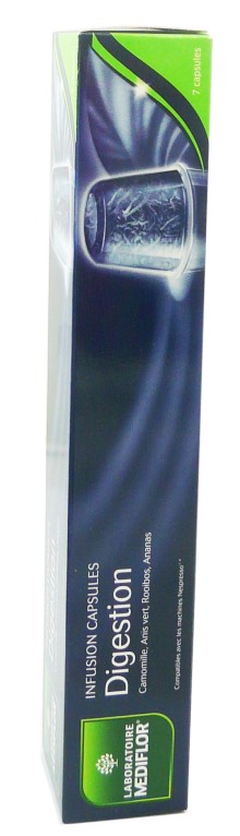 Les Infusions en capsules de MEDIFLOR, tous les bienfaits des plantes dans une capsule innovante compatible avec une machine Nespresso qui révèlent leur saveur ; Infusion DIGESTION: pour stimuler la fonction digestive.
