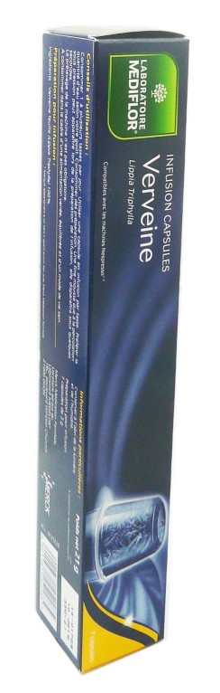 Les Infusions en capsules de MEDIFLOR, tous les bienfaits des plantes dans une capsule innovante compatible avec une machine Nespresso qui révèlent leur saveur ; Infusion VERVEINE : pour améliorer la digestion et favoriser la relaxation.