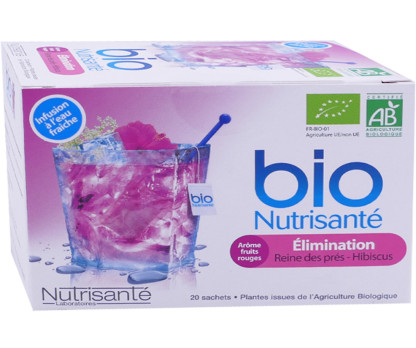 Depuis 1992, Les laboratoires NUTRISANTE proposent aux consommateurs en quête de bien-être des produits innovants, efficaces, naturels pour l’organisme à travers des gammes complètes de compléments nutritionnels, tisanes et infusions. Les infusions Nutrisanté 100% d’origine naturelle, sont formulées avec des plantes cultivées conformément aux exigences de l’agriculture biologique, dans le respect de l’environnement et sans utilisation d’OGM. Ces infusions conservent la pureté des plantes et sont garanties sans arôme artificiel. Les sachets-filtres sont élaborés avec du papier non blanchi au chlore et ne possèdent pas d’agrafe afin d’éviter tout phénomène d’oxydation. L’infusion Élimination Bio de NUTRISANTE est composée de différentes plantes dont de la reine des prés et de l’hibiscus qui améliorent l'élimination rénale de l'eau. L'hibiscus permet également de contribuer au drainage de l'organisme.