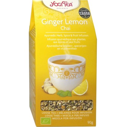 La marque YOGI TEA propose une gamme complète d’infusions délicieuses, composées d’ingrédients certifiés ’Agriculture Biologique,’ qui subissent des contrôles stricts afin de proposer un produit de grande qualité aux consommateurs les plus exigeants et répondre naturellement aux besoins de chacun : digestion, purification, nuit paisible, pour l’hiver, pour la Femme… YOGI TEA GINGER LEMON CHAI est un assemblage parfait de plantes, de fruits et épices au goût et à la saveur unique. Composée entre autres de gingembre, menthe poivrée, citronnelle, zeste de citron et poivre noir cette infusion revigorante offre à la fois chaleur épicée et fraîcheur acidulée.