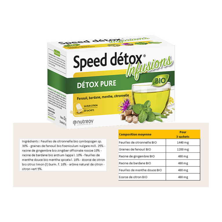 NUTREOV SPEED DETOX INFUSIONS BIO DETOX PURE 20 SACHETS SAVEUR CITRON