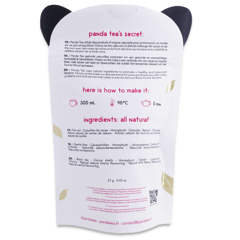 Avec ses 18 sachets, Panda Tea Cherry on the Cake est une solution idéale pour intégrer une pause bien-être dans votre routine quotidienne, et savourer un instant de plaisir tout en prenant soin de vous.