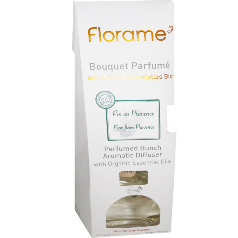 La gamme Bouquets Parfumés de FLORAME est composée de produits à base d’huiles essentielles à diffuser pour parfumer l’intérieur de l’habitat. Le Bouquet Parfumé au pin en Provence se compose d’huiles essentielles 100% naturelles et biologiques aux belles senteurs boisées et de résine. En se diffusant naturellement, le bouquet transportera au cœur des forêts en Provence.