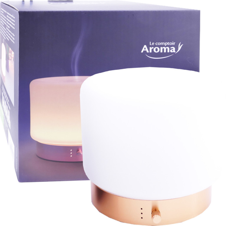 Le Diffuseur Aurore de LE COMPTOIR AROMA est un appareil discret et moderne qui va diffuser les huiles essentielles par des ultrasons en une brume d’eau légère à froid, et ainsi procurer une ambiance douce et relaxante. Fabriqué à partir de matériaux nobles (verre et aluminium massif cuivré), ce diffuseur moderne et épuré s’adaptera à tous les coins d’une pièce. Il possède plusieurs modes de diffusion pour s’adapter à chaque envie. Une diffusion continue ou programmée (1 heure/3 heures/8 heures), et un mode sommeil. La diffusion peut être alternée par tranche de 30 secondes. En mode sommeil, la lumière de l’appareil diminuera progressivement jusqu’à s’éteindre sur un cycle de 30 minutes pour emmener vers la détente et au sommeil..