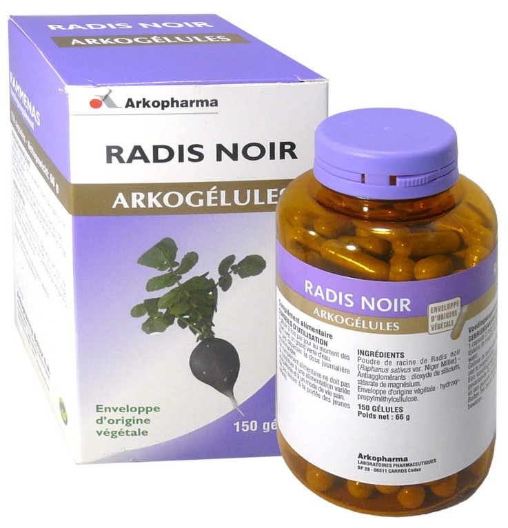 Le laboratoire ARKOPHARMA conçoit des compléments alimentaires et dispositifs médicaux à base de plantes naturelles dans des gélules pour offrir beauté, soins, et bien être. Arkogélules Radis noir d’ARKOPHARMA est un complément alimentaire composé de radis noir qui est une racine épaisse et comestible riche en vitamines, sels minéraux dont des dérivés soufrés, et glucosinolates. Arkogélules Radis noir va favoriser le confort digestif en détoxifiant l’organisme. Très apprécié lors d’un repas copieux ou en cas de changements de saison, l’organisme retrouvera rapidement son confort digestif.