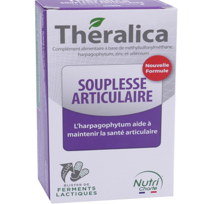 Souplesse des Articulations de THERALICA discount, un complément alimentaire à base de plantes et ferments lactiques dans votre parapharmacie en ligne à prix discount, conçu pour apaiser les douleurs articulaires et retrouver de la souplesse.