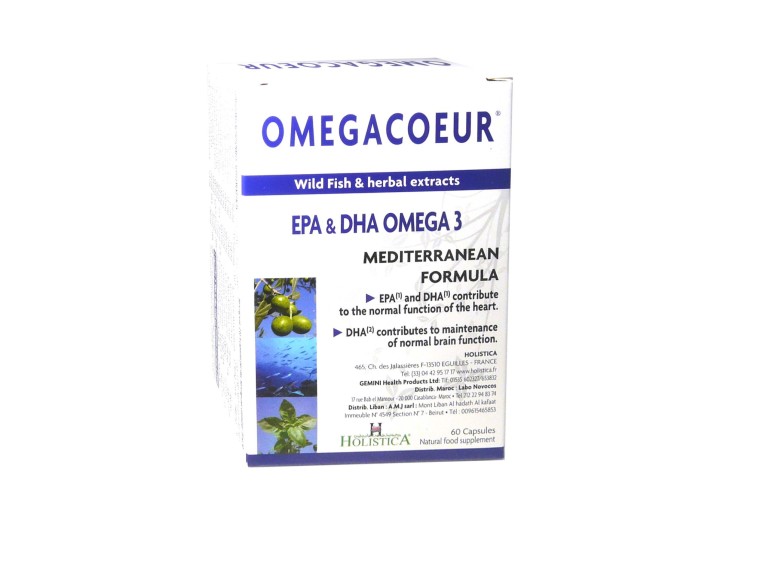 OMEGACOEUR Formule Méditerranéenne du laboratoire HOLISTICA, est un complément alimentaire à base d’EPA et de DHA, des acides gras oméga-3, qui soutiennent une activité cardiaque normale. Le DHA contribue à maintenir une activité cognitive normale.