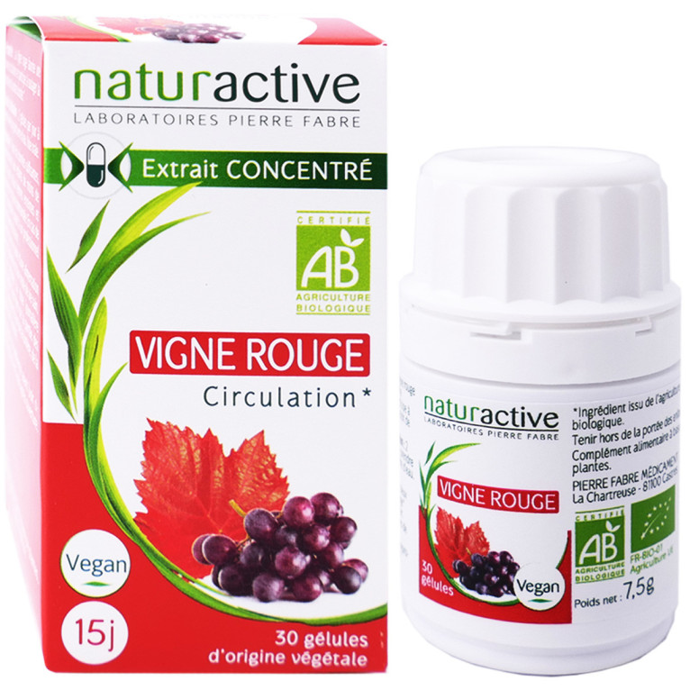 Vigne Rouge Bio de NATURACTIVE est un complément alimentaire conditionné sous forme de gélules, composé d’extraits sec concentré de vigne rouge qui contribue à favorise une bonne circulation et soulager la sensation de jambes lourdes.