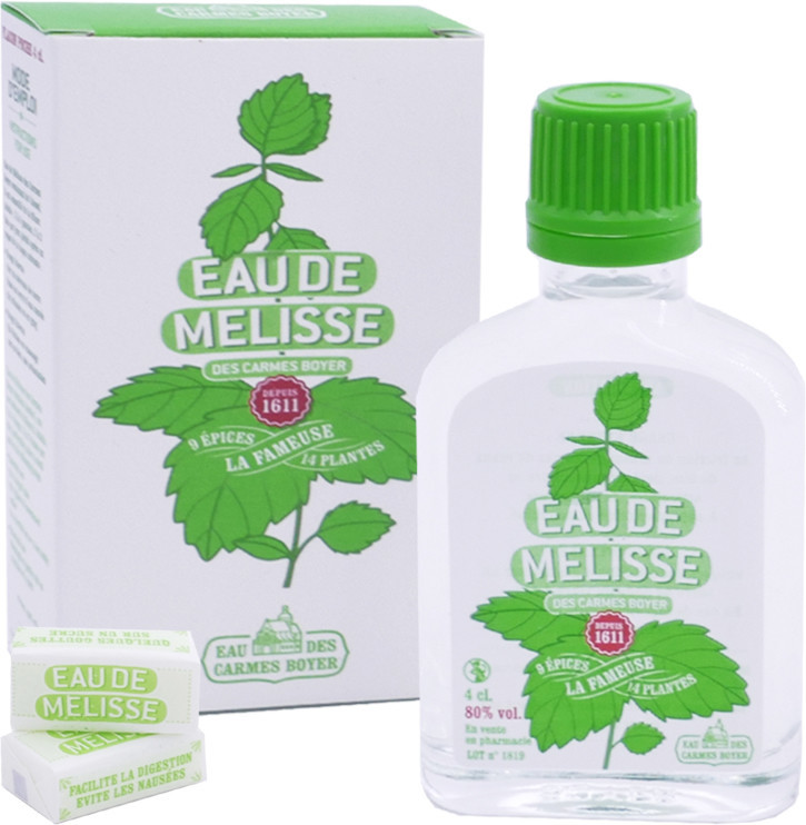 EAU DE MÉLISSE des Carmes Boyer à prix discount, la fameuse eau des Carmes Boyer, alliance de 9 épices et 14 plantes en flacon poche dans votre parapharmacie en ligne discount.