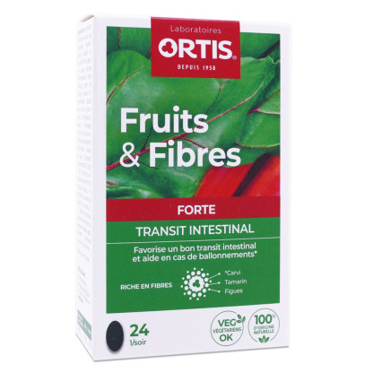 FRUITS & FIBRES Forte Transit Intestinal Action Rapide d’ORTIS à prix discount, un complément alimentaire en comprimés à base de rhubarbe, Carvi, Figues et Tamarin riches en fibres dans votre parapharmacie en ligne discount.