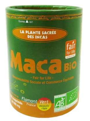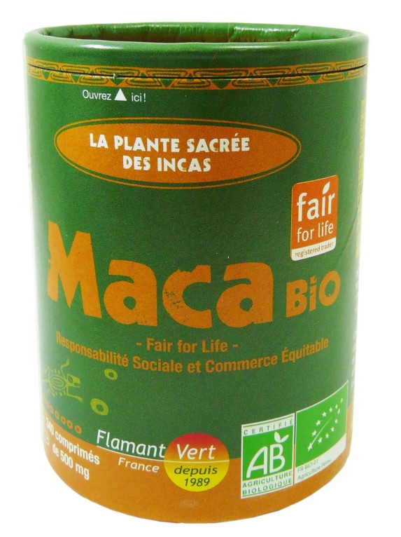 MACA de FLAMANT VERT est un complément alimentaire sous forme de comprimés, composé de Maca issu de l'agriculture biologique, qui est une plante originaire des Andes péruviennes. La Maca est une plante riche en nutriments capable de survivre dans des conditions climatiques extrêmes, sur les hauts plateaux des Andes. Elle est utilisée depuis très longtemps par les péruviens. La Maca de Flamant Vert est produite au Pérou de manière traditionnelle par des petits producteurs.
