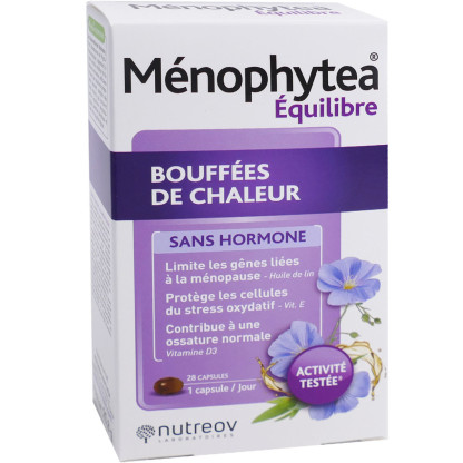 MENOPHYTEA EQUILIBRE BOUFFEES DE CHALEUR SANS HORMONE 28 CAPSULES est disponible en vente en ligne sur le site de votre parapharmacie à prix discount.