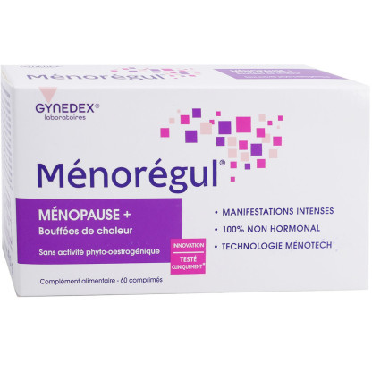 MENOREGUL Ménopause+ Bouffées de chaleur discount des laboratoires GYNEDEX, un complément alimentaire en comprimés destiné à la femme de plus de 45 ans lors de la période de la ménopause, dans votre parapharmacie en ligne à prix discount.