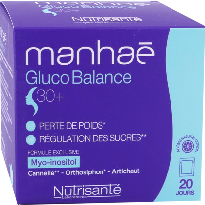 Plusieurs personnes n’arrivent pas à perdre du poids malgré leurs efforts. Un dysfonctionnement de votre métabolisme peut être à l’origine de ce problème. La sédentarité, l’âge, une alimentation trop sucrée ou un surpoids entraîne une augmentation de stockage des graisses dans l’organisme. Les laboratoires NUTRISANTE ont créé MANHAE GLUCO BALANCE, cette innovation à l’association unique de 3 actifs : Le Myo-Inositol (substance d’origine naturelle produite par le corps humain), la cannelle (contribue à réguler le taux de sucre) et l’orthosiphon, (facilite la perte de poids). Cette association UNIQUE va apporter son soutien dans votre processus de perte de poids.