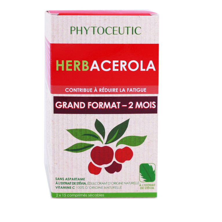 Découvrez les propriétés de PHYTOCEUTIC HERBACEROLA, un complément alimentaire de qualité supérieure pour renforcer votre système immunitaire. Les comprimés secables PHYTOCEUTIC HERBACEROLA sont formulés à base d'acérola, une petite baie originaire d'Amérique du Sud reconnue pour sa teneur exceptionnelle en vitamine C naturelle. En effet, chaque comprimé contient 1000 mg d'acérola, soit l'équivalent de 180 mg de vitamine C pure. Cette vitamine essentielle contribue au bon fonctionnement de votre système immunitaire, vous aidant ainsi à rester en forme.En plus de sa haute teneur en vitamine C, PHYTOCEUTIC HERBACEROLA est également enrichi en bioflavonoïdes, des antioxydants naturels qui renforcent l'action de la vitamine C. Ces composants agissent en synergie pour vous offrir une protection optimale contre les radicaux libres, responsables du vieillissement prématuré de vos cellules.Grâce à sa formule naturelle et à sa fabrication respectueuse de l'environnement, PHYTOCEUTIC HERBACEROLA est un choix idéal pour ceux qui souhaitent prendre soin de leur santé de manière responsable. Profitez dès maintenant de ses bienfaits en command