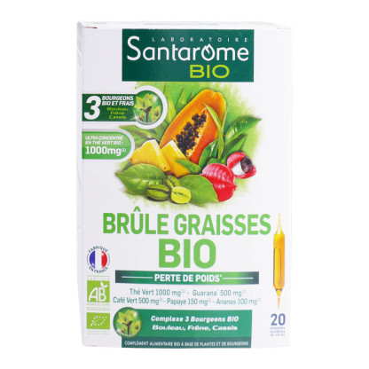 Brûle Graisses Bio de SANTAROME discount, le meilleur de la nature, dans un complément alimentaire en ampoules, à base de plantes et de bourgeons Bio destiné aux personnes brûler les graisses, dans votre parapharmacie en ligne à prix discount. Adultes et enfants à partir de 12 ans