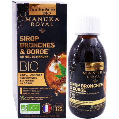 SANTAROME BIO MANUKA ROYAL SIROP BRONCHES & GORGE 125ML est disponible en vente en ligne à prix discount sur Pharmashopdiscount.