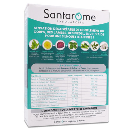 Rétention d’eau Bio de SANTAROME discount, le meilleur de la nature, dans un complément alimentaire en comprimés, à base de plantes et de bourgeons Bio destiné aux personnes ressentant une sensation de jambes lourdes, dans votre parapharmacie en ligne à prix discount. Adultes et enfants à partir de 12 ans