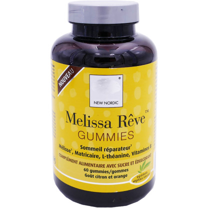 Les laboratoires New nordic proposent Melissa Rêve sous forme de gummies. Complément alimentaire qui contient des extraits concentrés de Mélisse, de Matricaire, de la L-théanine ainsi que des Vitamines du groupe B. A prix discount en ligne dans votre parapharmacie.
