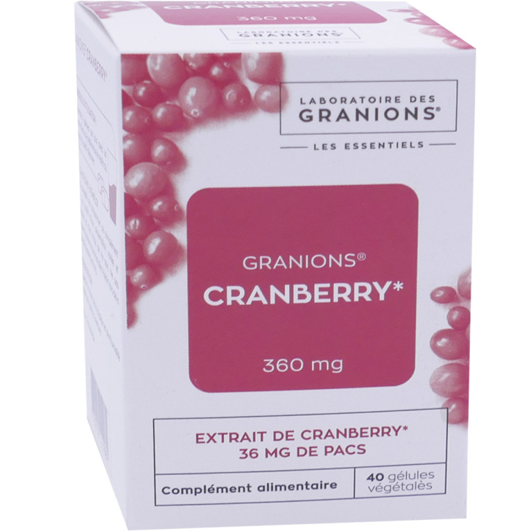 Le groupe français EA et les laboratoires des GRANIONS développent des compléments alimentaires élaborés avec des actifs d'origine naturelle de grande qualité : plantes, oligoéléments, acides gras, vitamines et minéraux, afin d’offrir une solution santé et bien-être à tous les maux du quotidien. La gamme NUTRITION SANTE « Les Essentiels » propose des compléments alimentaires à base d’actifs essentiels à l’organisme pour prévenir les déséquilibres et les carences. GRANIONS Les Essentiels CRANBERRY est un complément alimentaire spécialement formulé pour rétablir le confort urinaire. Sa formule unique contient du Cranberry ou canneberge, plante originaire d’Amérique du nord traditionnellement utilisée pour diminuer les gênes urinaires récidivantes et prévenir les infections urinaires, grâce à sa capacité à empêcher la fixation des bactéries E. coli sur les parois urinaires.