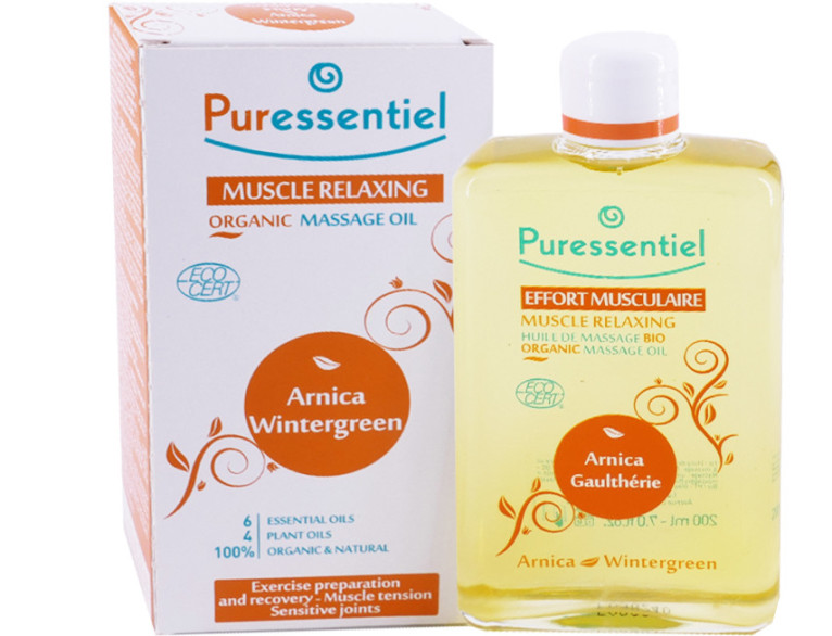 Puressentiel propose un large choix de produits d’aromathérapie et de cosmétique naturelle formulés à base d’huiles essentielles et d’actifs issus de la nature pour assurer santé et bien-être à l’organisme dans le respect son environnement. La gamme Puressentiel Articulations offre des produits formulés à base d’huiles essentielles pour apaiser les tensions musculaires et articulaires. L’Huile de Massage Bio Effort Musculaire est un soin sous forme de friction composé de 8 huiles essentielles aux vertus antalgiques, anti-inflammatoires, décontracturantes et apaisantes : Gaulthérie, Romarin à camphre, Lavande fine, Menthe poivrée, Eucalyptus citronné, Genièvre et arnica, spécialement associées pour préparer les muscles avant une épreuve sportive (entraînement, compétition) et les soulager après l’effort. Cette huile de massage, utilisé en massage pour allier les bénéfices du produit à ceux du mouvement, libère ses actifs par pénétration épidermique et réduit rapidement l’intensité de la douleur. Elle est enrichie en huile essentielle d’arnica pour préparer les muscles à l’effort et aider à une récupération rapide. Sa texture non grasse permettra une application agréable sans laisser de traces sur les vêtements. Testée sous contrôle dermatologique