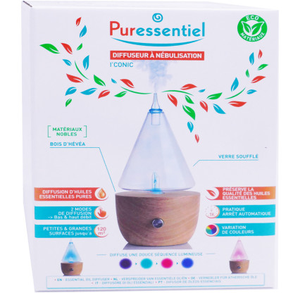 Le Diffuseur à nébulisation I’Conic discount de PURESSENTIEL, un diffuseur d’huiles essentielles pour une ambiance relaxante, tonique ou de détente dans votre parapharmacie en ligne à prix discount, pour parfumer son intérieur.