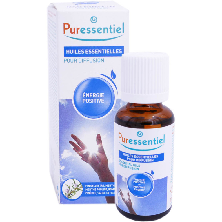 Huiles essentielles Pour Diffusion Energie Positive discount de PURESSENTIEL, un complexe d’huiles essentielles à utiliser avec le diffuseur PURESSENTIEL dans votre parapharmacie en ligne à prix discount, pour une ambiance tonifiante et ressourçante lors de besoin de retrouver de l’énergie
