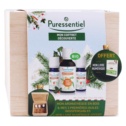 Le Coffret « Mon Coffret Découverte » discount de PURESSENTIEL, pour procurer confort et plaisir des sens, sur l’organisme au quotidien dans votre parapharmacie en ligne à prix discount. Un joli coffret à offrir ou à se faire offrir ! Huile Essentielle Tea tree Bio (10ml) ; Huile Essentielle Ravintsara Bio(10ml) ; Huile Végétale Amande douce Bio (50m) ; Livre numérique Offert