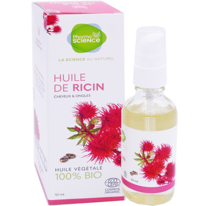 Huile de Ricin Bio de PHARMASCIENCE discount, la science au naturel dans votre parapharmacie en ligne à prix discount, dans une huile végétale 100% Bio pour renforcer les ongles et les cheveux.