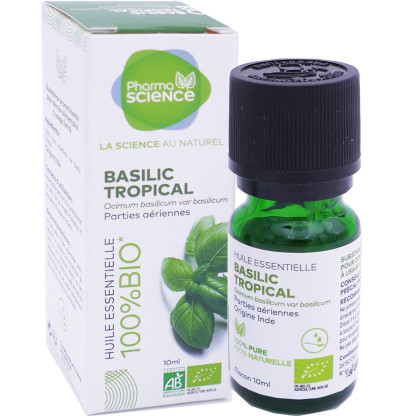 Basilic Tropical BIO du laboratoire PHARMASCIENCE, une huile essentielle composée de plantes, en compte-gouttes, dans votre parapharmacie en ligne à prix discount.
