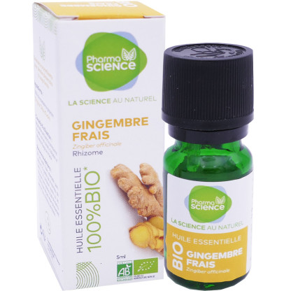Gingembre frais, Huile essentielle bio de PHARMASCIENCE, la science au naturel dans votre parapharmacie en ligne à prix discount, dans une huile essentielle 100% pure et naturelle.