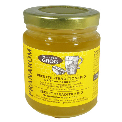 Miel Recette tradition Bio Défenses naturelles de PRANAROM, une préparation à diluer dans une tasse bien chaude ou à consommer pur qui aide à renforcer l’organisme face aux petits virus hivernaux tout en se faisant plaisir ! Pour toute la famille à partir de 7 ans.