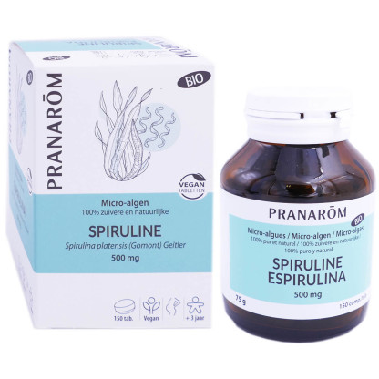 Spiruline Bio discount de PRANAROM, à base de micro-algue marine dans votre parapharmacie en ligne à prix discount dans un complément alimentaire.