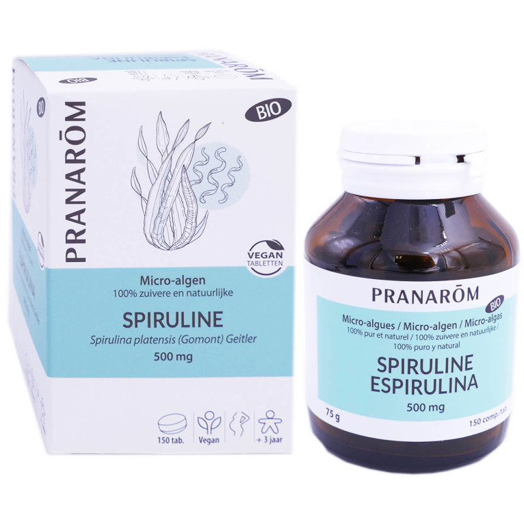 Spiruline Pranarom Bio est composée à 100% de Spiruline biologique, micro-algue marine en forme de spirale.