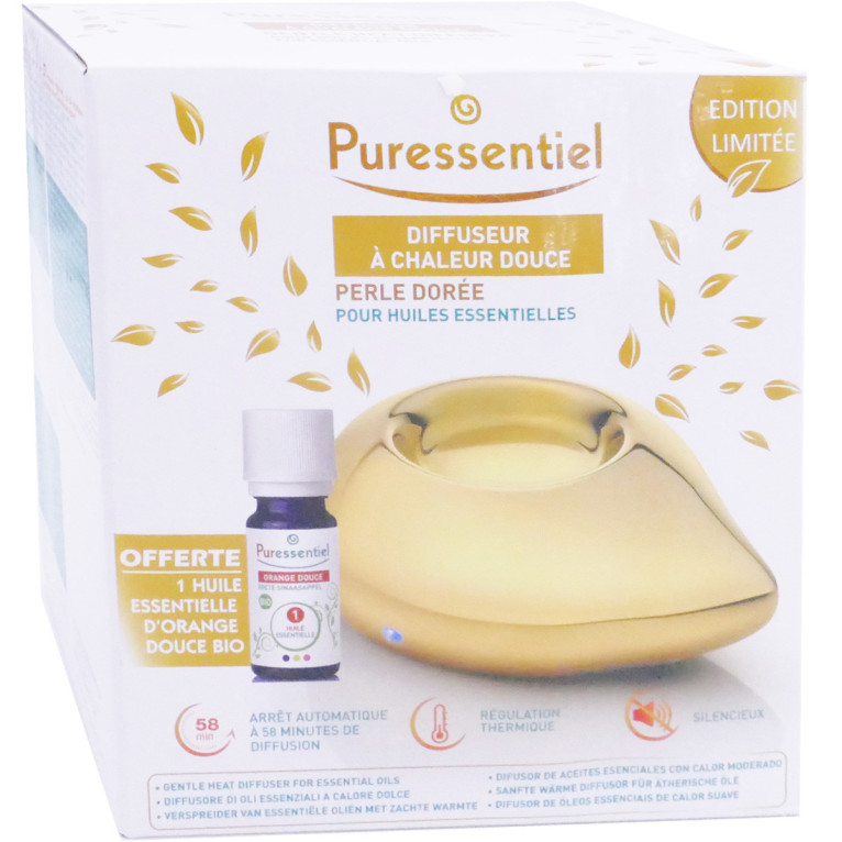 PURESSENTIEL DIFFUSEUR A CHALEUR DOUCE PERLE DOREE + ORANGE DOUCE 10ML