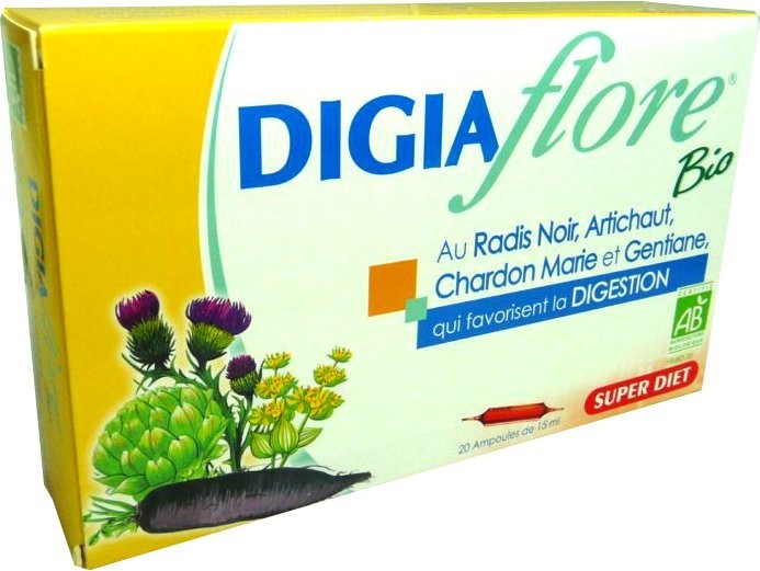 DIGLIFLORE Complexe de 4 plantes Digestion de SUPER DIET, le complément alimentaire conditionné en ampoules, à base de plantes, dans votre pharmacie en ligne pas chère.