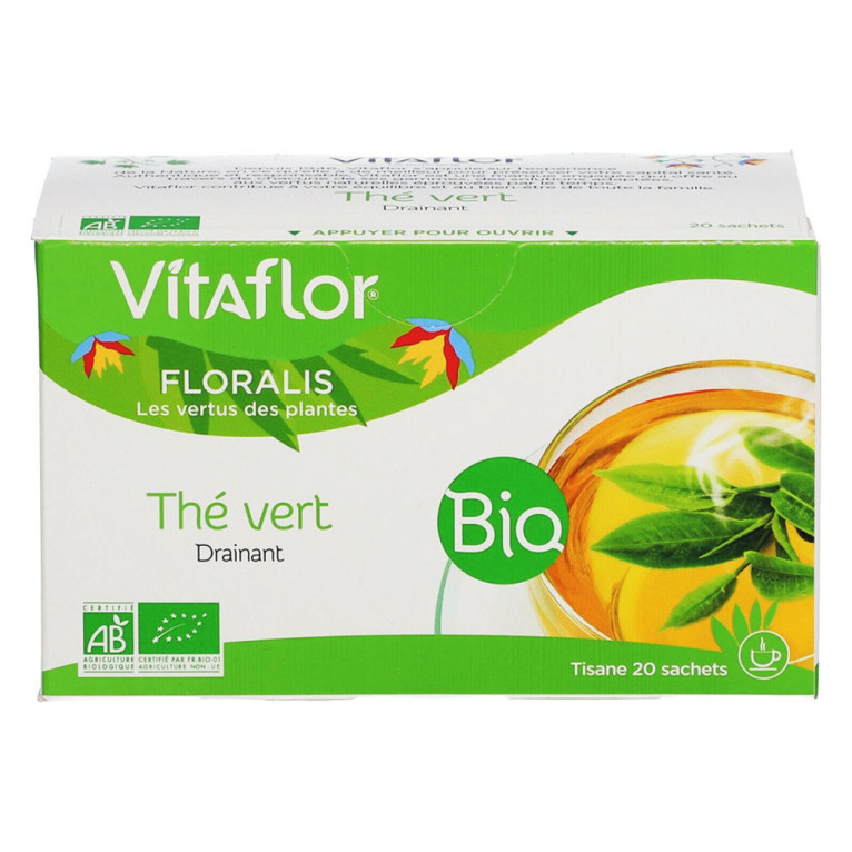 VITAFLOR FLORALIS BIO THÉ VERT, une infusion délicate et rafraîchissante en vente en ligne sur le site de votre parapharmacie à prix discount.