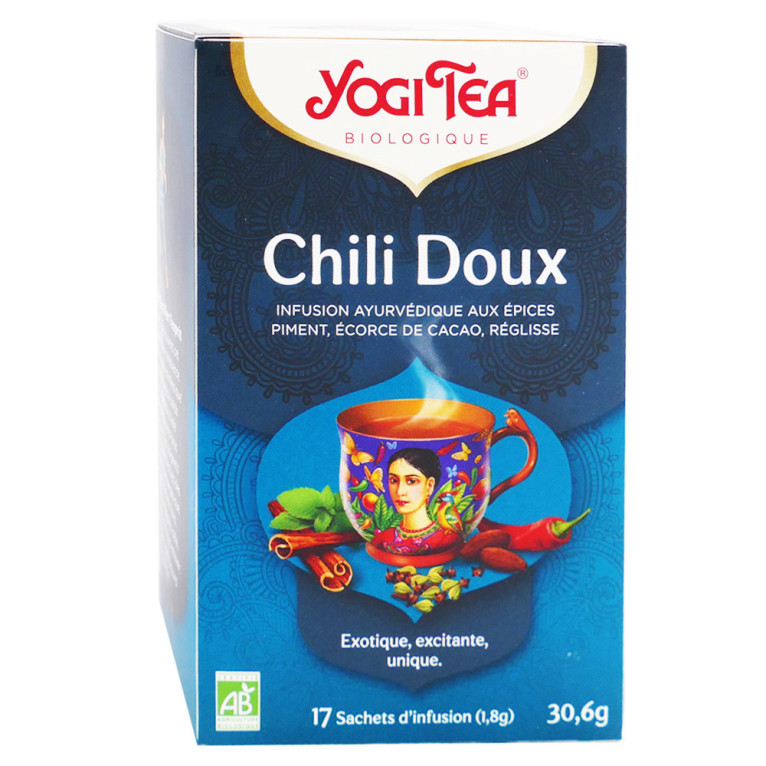 YOGI TEA BIO CHILI DOUX 17 SACHETS D'INFUSION est en vente en ligne sur le site de votre parapharmacie à prix discount, offrant une infusion inspirée du yin et du yang pour une expérience sensorielle unique.