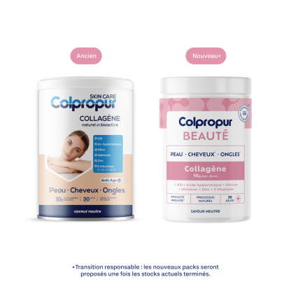 Colpropur Beauté Collagène discount, le complément alimentaire à base de collagène hydrolysé, d'acide hyaluronique, de Zinc, Sélénium et de vitamines, dans votre parapharmacie en ligne à prix discount.