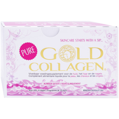 GOLD COLLAGEN PURE 10 BOUTEILLES des Laboratoires MINERVA RESEARCH à prix discount, le complément alimentaire en solution buvable à base de collagène (collagen drink), vitamines et minéraux dont le Zinc qui contribue au maintien d'une peau normale, de cheveux et ongles normaux dans votre parapharmacie en ligne à prix discount.