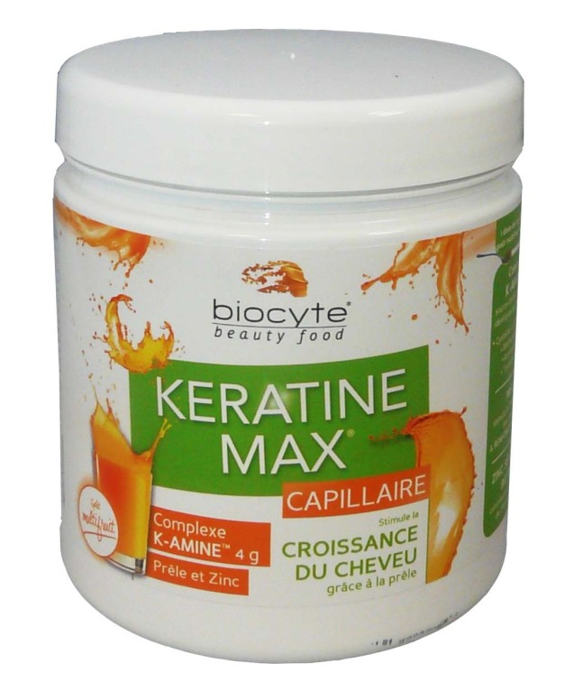 KERATINE MAX CAPILLAIRE de BIOCYTE, le complément alimentaire sous forme de poudre à diluer pour renforcer la chevelure et participer à la croissance des cheveux dévitalisés ou cassants.