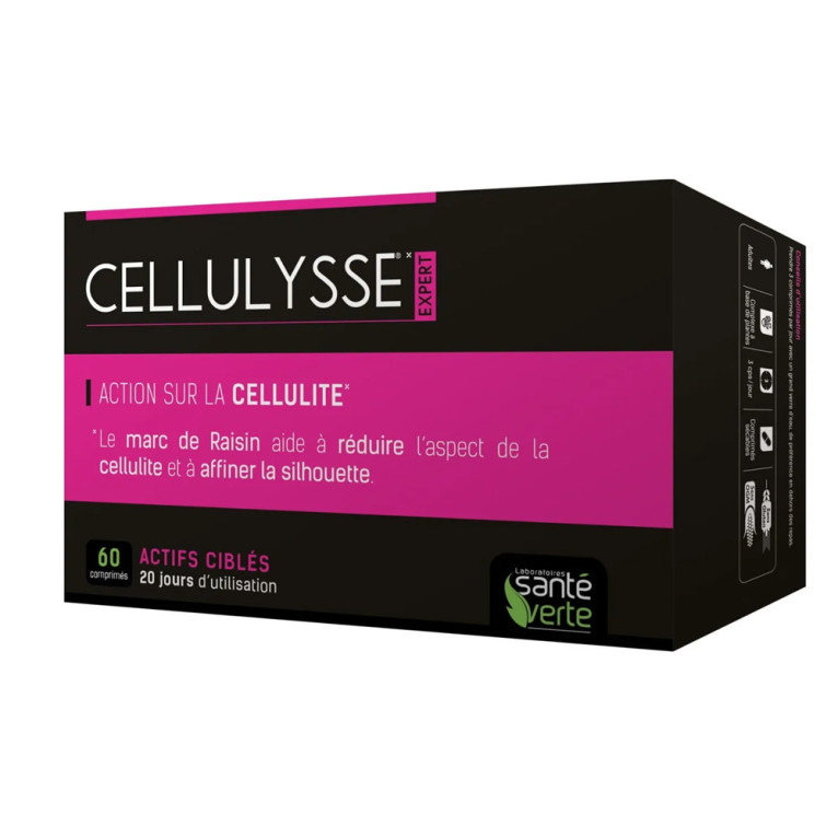 Cellulysse® des LABORATOIRES SANTE VERTE, le complément alimentaire conditionné sous forme de comprimés avec du marc de raisin qui aide à réduire l'aspect de la cellulite et aide la silhouette à s'affiner dans votre parapharmacie en ligne à prix discount.