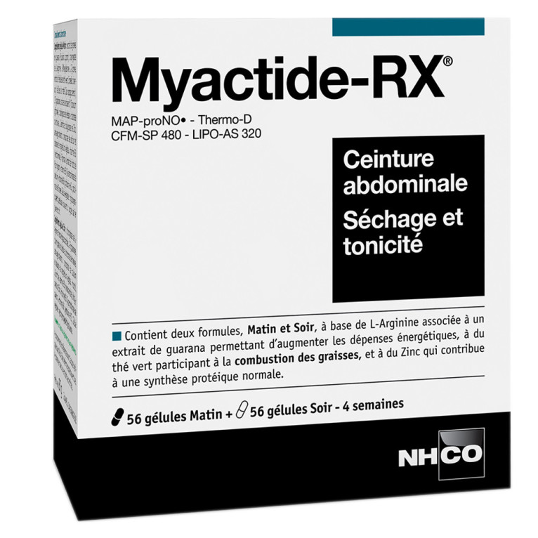 MYACTIDE-RX Ceinture abdominale Séchage et Tonicité Laboratoire NHCO, un complément alimentaire à base d'acides aminés et de plantes dont le thé vert qui favorise la combustion des graisses dans votre parapharmacie.