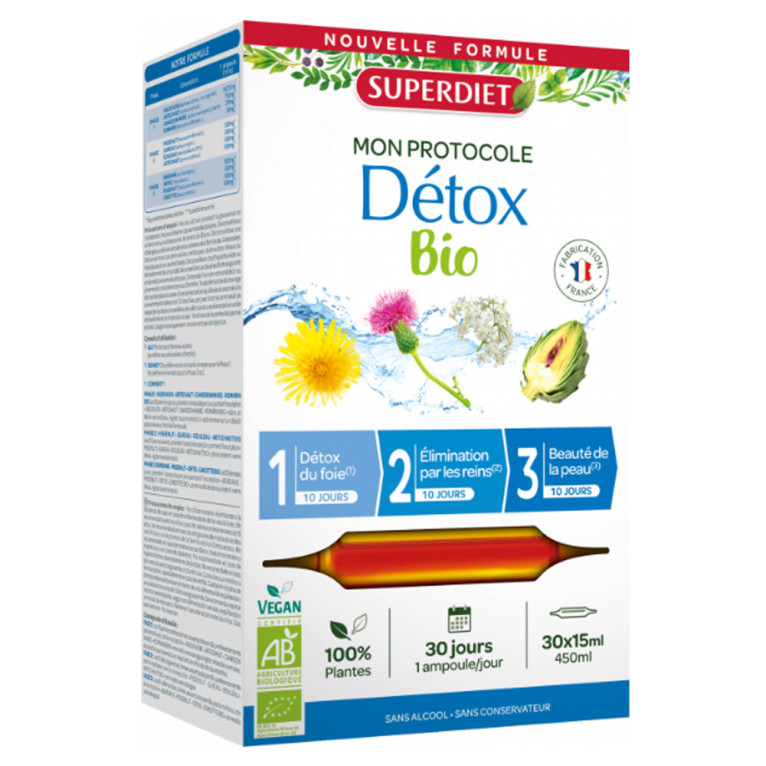 Protocole Detox de SUPER DIET, 3 compléments alimentaires sur 1 mois, à base de plantes, dans votre parapharmacie en ligne à prix discount.