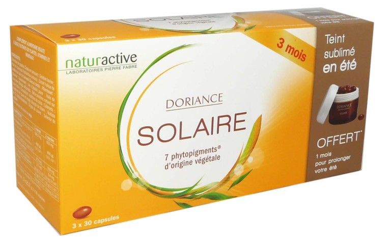 Naturactive des laboratoires Pierre Fabre proposent des solutions de santé naturelles, sûres et efficaces, développées selon une démarche éthique et responsable de la santé et du bien-être. DORIANCE est une gamme de compléments alimentaires et solutions de phytothérapies, formulés à base d’extraits de plantes et d’actif rigoureusement sélectionnés pour sublimer naturellement la beauté de la peau, des cheveux et du corps. DORIANCE Soleil de NATURACTIVE est un complément alimentaire spécialement conçu pour offrir sans procédé chimique, un hâle uniforme et harmonieux sur l’ensemble du corps et protéger la peau des effets néfastes du soleil en combattant le photovieillissement. Sa formule associe 7 phytopigments d'origine naturelle, du paprika, des extraits d'une micro-algue, de l’huile de bourrache, et de la vitamine E antioxydante pour assurer un bronzage sublimé pendant plusieurs semaines, même après l’exposition solaire. Attention : DORIANCE Solaire ne protège pas des rayons UV du soleil, il est indispensable d’utiliser une crème protectrice solaire adaptée.