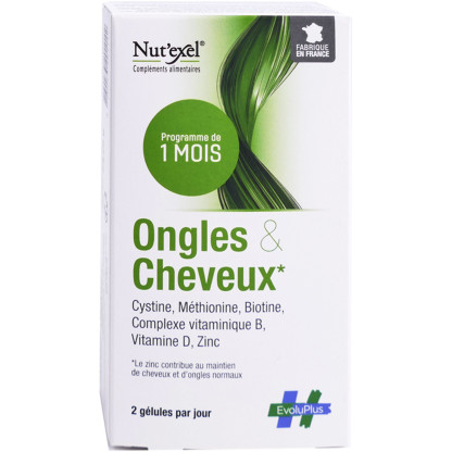 Découvrez les bénéfices des gélules EVOLUPLUS NUT'EXEL ONGLES & CHEVEUX, un produit de qualité proposé par une marque renommée dans le domaine de la parapharmacie.