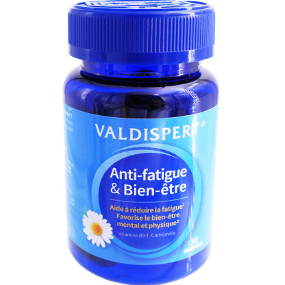 Anti-fatigue & Bien-être de VALDISPERT, le complément alimentaire sous forme de gommes à mâcher à base de Camomille et vitamine B9, disponible dans votre parapharmacie en ligne à prix discount.