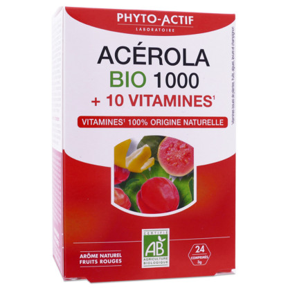 PHYTO ACTIF ACEROLA BIO 1000 + 10 VITAMINES 24 COMPRIMÉS est disponible en vente en ligne à prix discount sur Pharmashopdiscount.