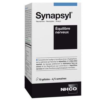 SYNAPSYL Equilibre nerveux Laboratoires NHCO, un complément alimentaire à base d’acides aminés et de Magnésium qui contribue à l’équilibre nerveux dans votre parapharmacie en ligne.