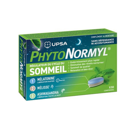 UPSA PHYTONORMYL SOMMEIL 30 COMPRIMES en vente en ligne sur le site de votre parapharmacie à prix discount est un complément alimentaire qui vous aidera lors de difficulté à trouver le sommeil.